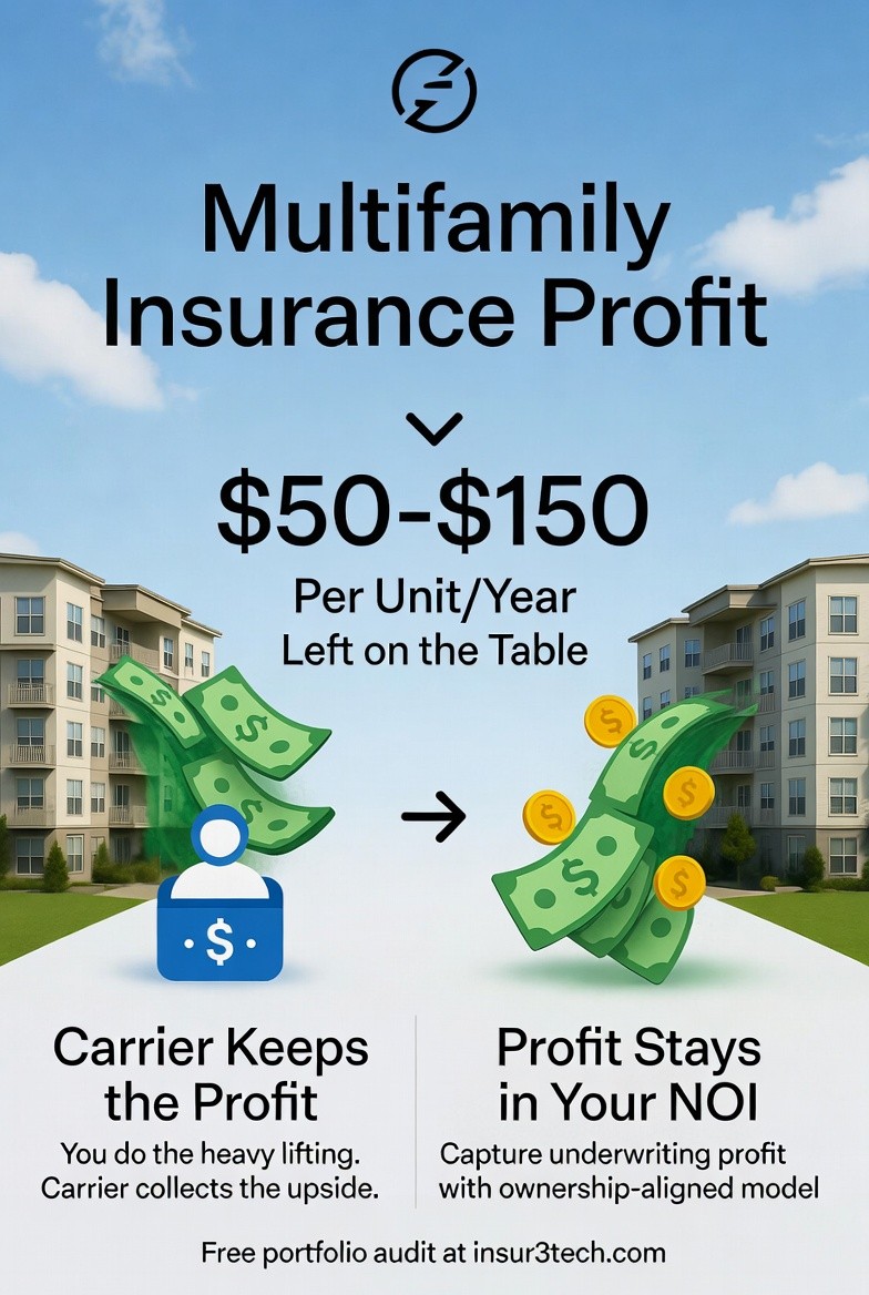 After talking to hundreds of regional managers and on-site staff, I’ve seen the same pattern over and over: properties keep quietly handing third-party carriers $50–$150 per unit per year in pure underwriting profit. And for work the operators and their teams are already doing themselves.